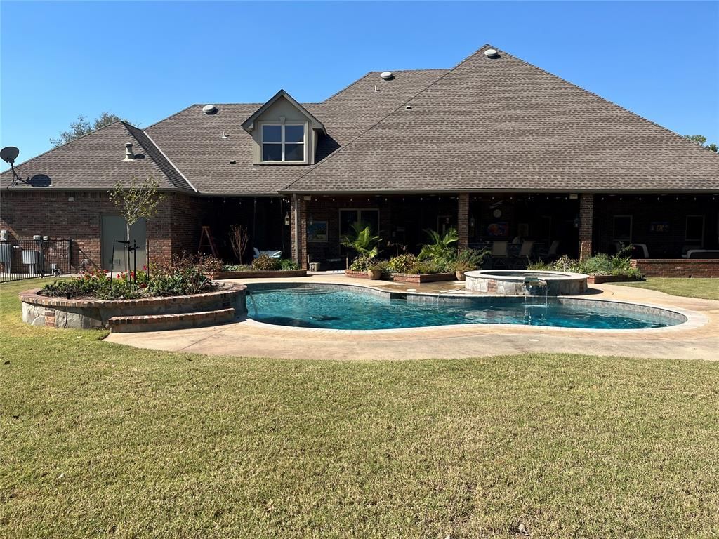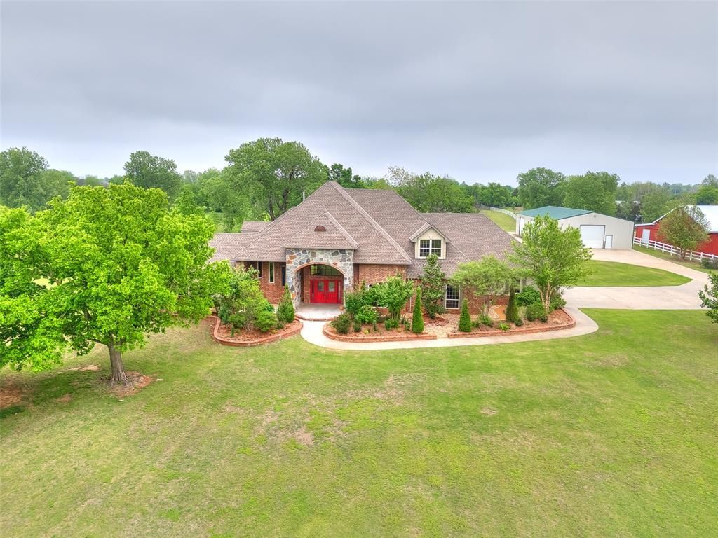 Nestled in Oklahoma City, Oklahoma, this single-family residence sits on 5.11 acres (MOL) and offers 4 bedrooms, plus a bonus room and 4 full bathrooms, and 3 half bathrooms. Each bedroom features an ensuite bathroom, and the exterior half-bath on the pool patio keeps swimmers off your interior floors. Step outside to your private backyard retreat, complete with a pool featuring a built-in jacuzzi, an oversized back patio with an outdoor kitchen, and a cozy wood-burning fireplace-perfect for entertaining year-round. Inside, the home features efficient geothermal heating and air, and is pre-wired for networking with numerous data ports throughout. Ethernet lines are already in place from the home to the shop, making it ideal for remote work, smart-home upgrades, or a dedicated workshop office. The oversized three-car garage provides ample space for vehicles and storage, while the insulated and heated 40x80 shop is a standout; complete with a half bath, a 2-post car lift, and plumbing for compressed air with multiple hose connections throughout the building (compressor removed by owner). The property is thoughtfully built for future expansion with an oversized gas line for additional natural gas needs, a CT electric meter for future electrical growth, multiple electrical stub-outs for added flexibility, and a water line stubbed out past the shop for future water needs on the property. To top it off, plenty of matching brick is available for future projects or repairs.